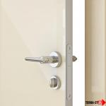 Двери изготовлены на современном высокотехнологичном оборудовании производства Италии и Германии. Полотно покрыто глянцевой пленкой ПВХ толщиной 0,45 мм производство Германия. Алюминиевая кромка по вертикальным торцам полотна служит дополнительной защитой. Магнитный замок предустановлен и идет в комплекте.